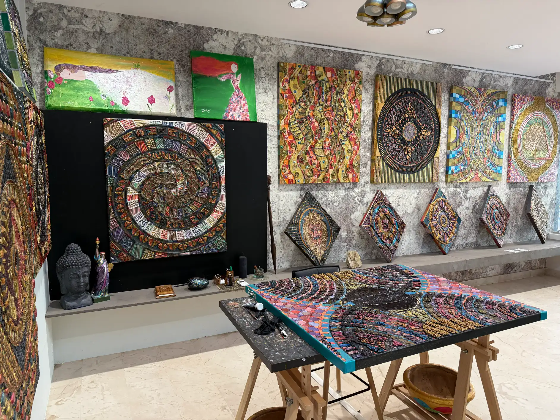 A unique and multifaceted space dedicated to the visionary art and transformative practices of Mauricco Zaraj. It serves as a hub for creativity, personal growth and healing, offering a comprehensive array of experiences and services that cater to art enthusiasts, seekers of personal development and individuals looking for therapeutic benefits through art.